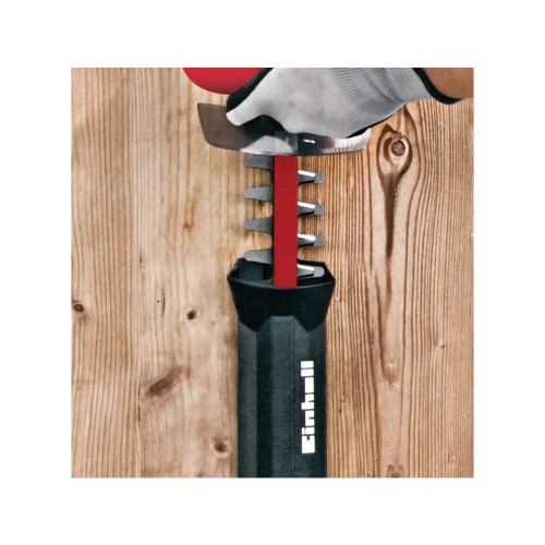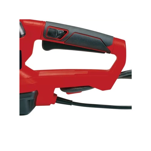 Оптимальна безпека забезпечується дворучним запобіжним вимикачем, який зупиняє ножі менш ніж за секунду. Електричний кущоріз Einhell також оснащений великим захистом для рук, алюмінієвою кришкою леза та захистом від ударів. Для безпеки під час використання передбачений затискач для розвантаження кабеля.