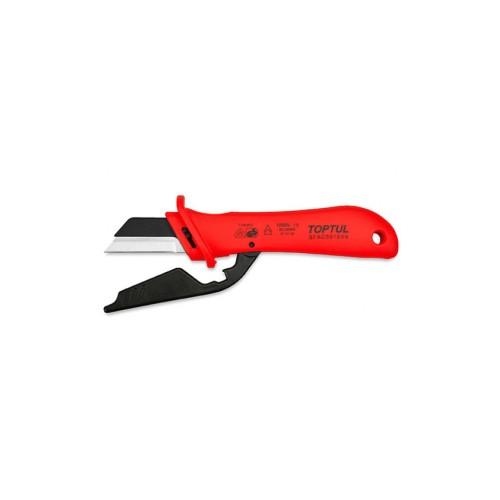 Ніж кабельний ізольований 1000 V VDE зі змінним лезом торгової марки Toptul. Використовуваний для зачищення товстих дротів і кабелів.