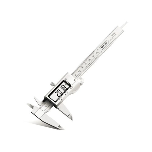 Точний цифровий штангенциркуль для вимірювань у метричній та дюймовій системах. Виготовлений із нержавіючої сталі, забезпечує довговічність та плавну роботу, ідеальний для професійного та аматорського використання. Постачається у захисному пластиковому футлярі.