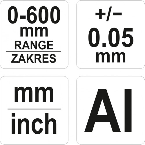 • Діапазон вимірювання: 0-600 мм.