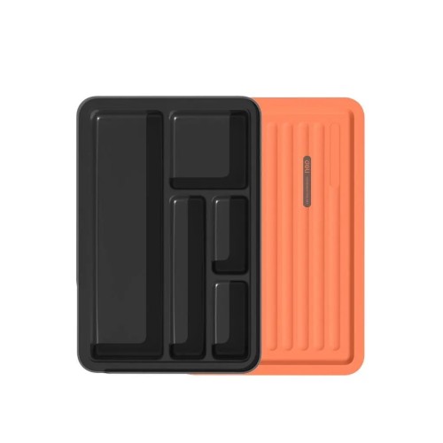 Сучасний багатошаровий ящик для деталей із магнітними кришками та рельєфним покриттям — для зручного зберігання та швидкого доступу. Запатентована конструкція, молодіжна сіро-помаранчева гама та яскравий логотип спереду — поєднання стилю й практичності. Упакований у картонну коробку.