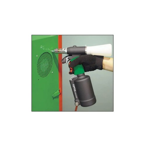 Пневмогідравлічний заклепочник TOPTUL 2.4-5.0 мм KARA0205. Підходить для заклепок з алюмінію / сталі і неіржавіючої сталі. Призначений для професійної клепки і безперервної роботи. Конструкція з подвійним повітрозабірником дозволяє легко працювати з правою або лівою рукою. Новий використаний контейнер з оправою для захисту очей оператора і підтримання робочих місць у чистоті. Конструкція амортизатора для мінімізації втоми рук. Шумоглушник для зручності. Розумна конструкція наконечника, щоб уникнути втрати заклепок. Конструкція отвори для заправки масла для швидкого заповнення запасу гідравлічного масла. Комплект включає в себе складальник оправки заклепок, два комбінаційних ключа, кисть, гідравлічний інжектор масла без масла і один комплект додаткових щелеп.
