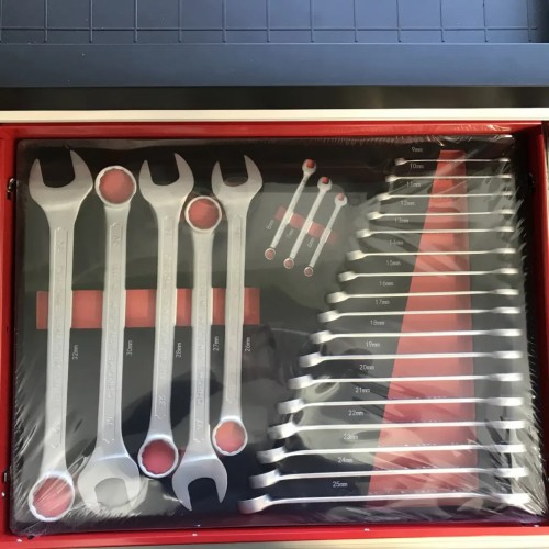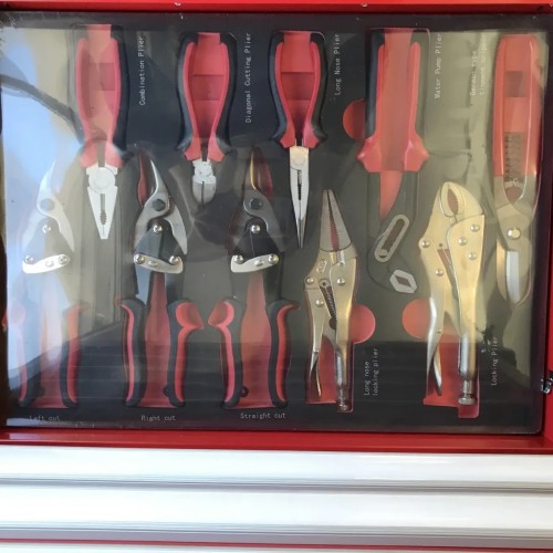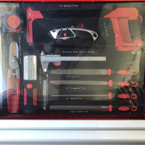 шарнірно-губцевий інструмент; викрутки; торцеві головки; інструменти для роботи з торцевими головками; гайкові ключі; шестигранні/зіркоподібні ключі; молоток; тримач для біт; тріскачка; подовжувач; вороток; ліхтарик; щуп для вимірювання зазорів; стамеска; рулетка; ніж; кардан шарнірний; напилок; штангенциркуль; ножівка; ножиці