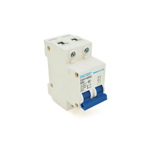 Автоматичний вимикач постійного струму CHCYZO YT-RKB-2P-50A є надійним та ефективним пристроєм для захисту електричних ланцюгів від перевантажень і коротких замикань. Він забезпечує безпеку та стабільність роботи вашої системи електроживлення, автоматично виявляючи та перериваючи подачу енергії у разі несправності.