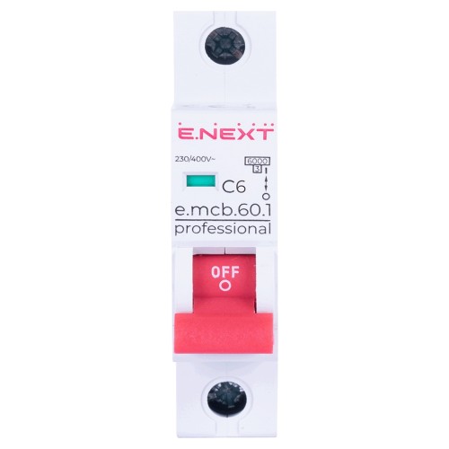 Модульний автоматичний вимикач e.mcb.pro.60.1.C 6 (new), 1р, 6А, C, 6кА (new) призначений для захисту низьковольтних електричних мереж та обладнання від струмів перевантаження та короткого замикання, а також нечастих оперативних комутацій електричних мереж