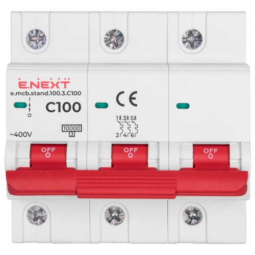 Автоматичний вимикач E.NEXT 3-п e.mcb.stand. 100А C ( 10кА) (s002214)