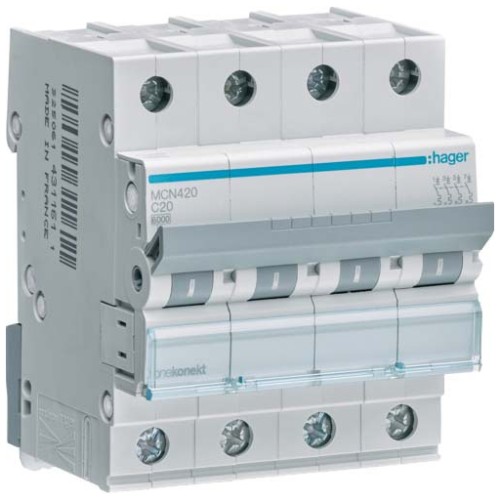MCN420 Hager – Автоматичний вимикач 4 полюси 20A - 6kA характеристика C 4 модулі.