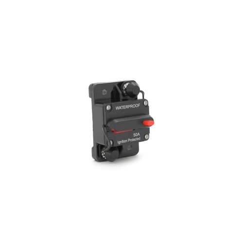 Автоматичний вимикач запобіжник однополюсний постійного струму 12-48V, модель GG-CB5 Waterproof 50A, є надійним електричним пристроєм, розробленим для захисту електричних схем від перевантажень і коротких замикань у системах постійного струму. Цей високоякісний запобіжник має вологозахист, що дає змогу використовувати його в умовах підвищеної вологості або під час роботи поза приміщеннями.
