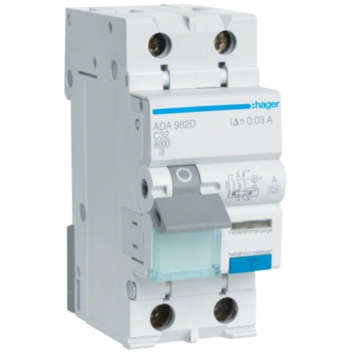 • Диференціальний автоматичний вимикач Hager 1-п.+N 32A C 30mA (6kA) A (B) (ADA982D)