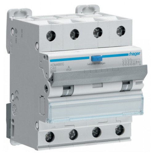 • Диференціальний автоматичний вимикач Hager 4-п. 40A C 30mA (6kA) A (B) (ADM490C)