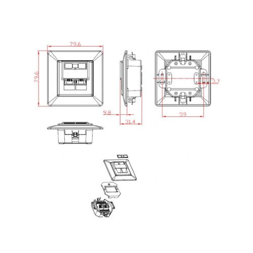 Монтажний настінний блок із двома мережевими екранованими розетками категорії 6.