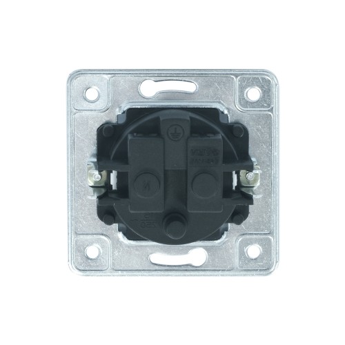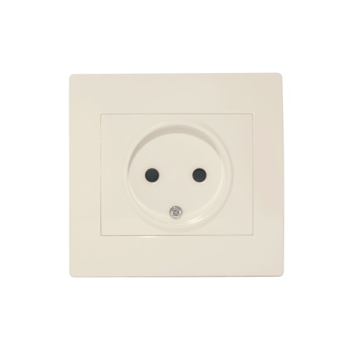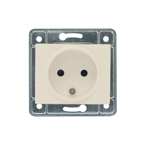 Розетка без заземлюючих контактів c захисними шторками SE-123 має захисні шторки для захисту від несанкціонованого потрапляння предметів. Величина максимально допустимого струму навантаження становить 16А.