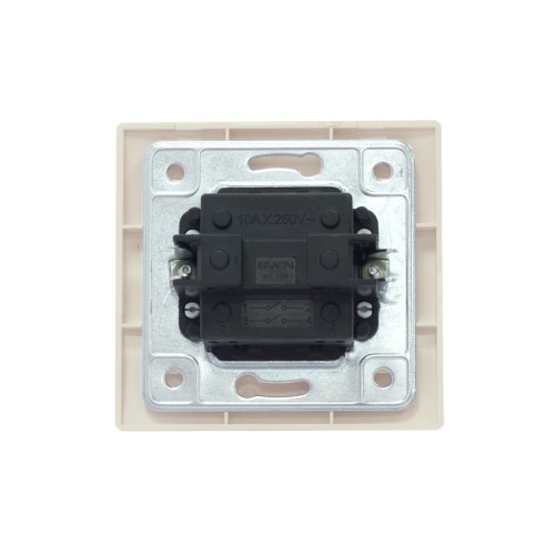 Електроустановочні обладнання SVEN SE-104 ivory (6438162010522) - подвійний вимикач, який призначений для комутації електричних ланцюгів. Він має можливість управління двома джерелами світла. а величина максимально допустимого струму навантаження становить 10А. Матеріал корпусу - негорючий PC-пластик, забезпечує міцність, безпека, нагревостойкость в процесі експлуатації, стійкий до впливу температур до 650 °С. Основу механізму з термостійкого пластику володіє необхідними діелектричними властивостями і забезпечує стійкість до займання до 850 °С. А мідні контакти вимикачів, плаковані срібним сплавом, забезпечують стабільно високу якість контактування при багаторазових комутаціях ланцюгів зазначеної потужності.