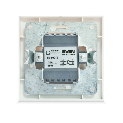 Електровстановлювальне обладнання SVEN SE-60013 white (4895134788766) - вимикач двополюсний одинарний прихованого типу білий. Матеріал корпусу - негорючий ABS-пластик. Основа з оцинкованої сталі 1 мм. Підпружинені кріпильні зачепи для зручності монтажу. Поліпшена конструкція клем для дротів.