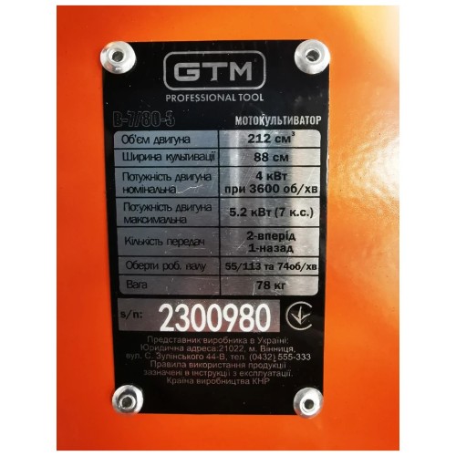 GTM B-7/80-3 - садова техніка побутового класу для обробки землі, оранки грядок та городів середньої площі. Дана модель мотоблока оснащена бензиновим двигуном з потужністю 7 л.с (5,2 кВт) зі збільшеним крутним моментом для кращої роботи. Ширину культивації під час роботи можна регулювати від 500 мм до 800 мм, залежно від ширини грядки.