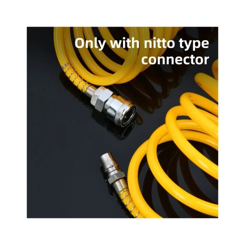 Міцний повітряний шланг із поліуретану з подовженою довжиною — для зручного використання в майстернях та пневмосистемах. Легкий і стійкий до перегинів, забезпечує стабільну подачу повітря. Оснащений зʼєднувачем типу Nitto та маркуванням для швидкого розпізнавання.