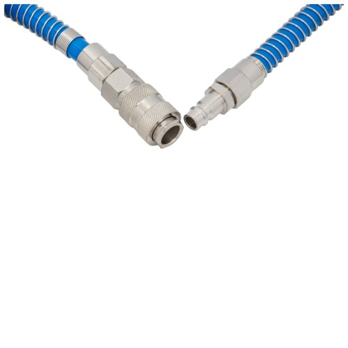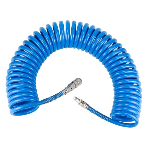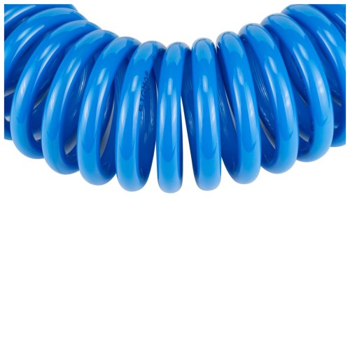 Шланг спіральний поліуретановий (PU) використовується для передачі повітря в пневматичних системах стандартного тиску. Має хорошу стійкість до механічних впливів (перегини, здавлювання, скручування) і швидко відновлює свою первинну форму після зняття механічного впливу. Шланг не схильний до гідролізу і має хорошу стійкість до впливу озону, масел, палива та мікроорганізмів.