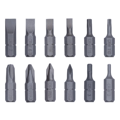 Викрутка Sigma з реверсом та набором біт (модель 4001831) — це універсальний інструмент, який стане незамінним у вашому арсеналі. Цей комплект включає 12 змінних біт, що дозволяє виконувати широкий спектр робіт завдяки різним типам наконечників, таким як хрестоподібний Phillips (PH), шестигранний (H), плоский (SL) та зіркоподібний Torx (T). Храповий механізм забезпечує швидку і зручну роботу, дозволяючи виконувати операції з мінімальними зусиллями. Викрутка-тримач виконана з міцного металу та має ергономічну рукоятку з комбінації гуми та пластику, що гарантує надійний та комфортний хват під час роботи. Матеріал біти виготовлений із високоякісної сталі CrV (хром-ванадій), що забезпечує довговічність та стійкість до зносу. Ця викрутка підходить для професійного використання та домашніх робіт, надійно фіксує біти і забезпечує точність та ефективність виконання завдань. Завдяки реверсивному механізму ви з легкістю можете змінювати напрям обертання, що значно спрощує процес монтажу та демонтажу. Вибираючи викрутку Sigma з реверсом та бітами, ви отримуєте надійний інструмент для різноманітних завдань.