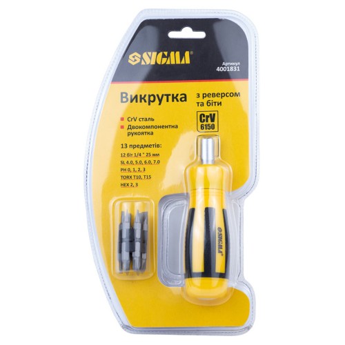 Набір викруток Sigma з реверсом c бітами 12шт CrV (4001831)
