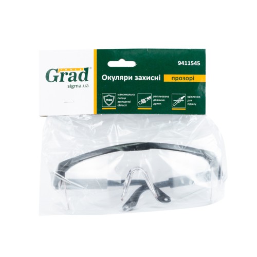 Окуляри захисні (прозорі) GRAD (9411545) призначені для захисту органів зору при різних роботах (слюсарні та ремонтні роботи, обробка каменю, будівництво, робота на верстатах, хімічна промисловість, машинобудування, сільське господарство)