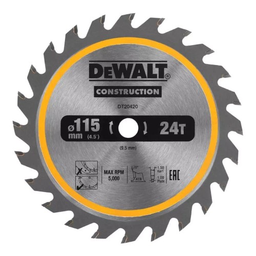 Диск пильний DeWALT універсальний, 115 х 9.5 мм, 24z, TCT, 5000 об/хв (DT20420)
