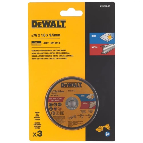 Круг відрізний DeWALT нержавіюча сталь/листовий метал, 76х1, 6х9, 5 мм. 3 шт. (DT20592)