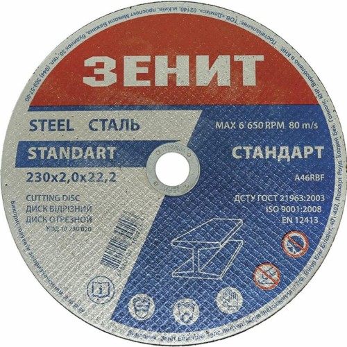 Круг відрізний Зеніт відрізний по металу 230х2.0х22.2 мм (10230020)
