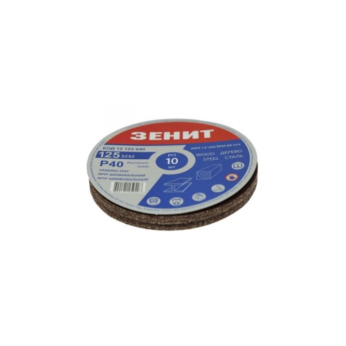 Круг зачистний Зеніт 125 мм з. 40 під "липучку", 10 шт (12125040)