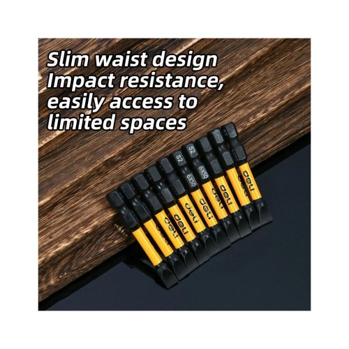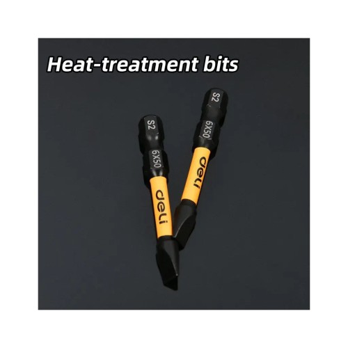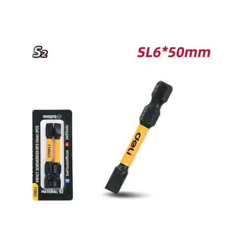 Біти Deli для викрутки SL 6 х 50 мм 2 шт. Надійні та міцні насадки, розроблені для роботи з філіпс-кріпленнями. Виготовлені зі сталі S2 з чорним захисним покриттям, вони забезпечують високу твердість, довговічність і стабільну роботу навіть під навантаженням. Вбудована магнітність гарантує зручне утримання шурупів і підвищує комфорт під час закручування.