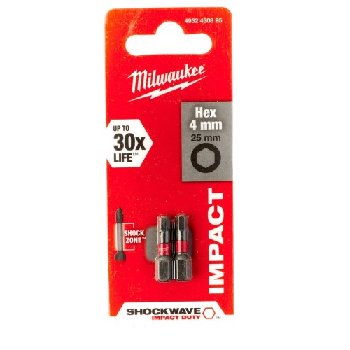 Набір біт Milwaukee SHOCKWAVE, Hex4, 25мм, 2шт (4932430895)