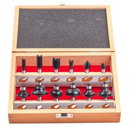 Milwaukee (4932451668) - комплект інструментів, призначених для обробки та створення форм і виїмок у різних породах дерева, включає фрези різних типів, щоб відповідати багатьом видам фрезерних робіт. Поставляються в спеціальному дерев'яному кейсі, забезпечуючи зручне зберігання і швидкий доступ до потрібного інструменту.