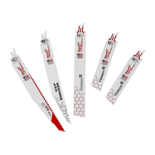 Набір полотен для шабельної пили Milwaukee SAWZALL CARBIDE, 2 x WRECKER мультиматеріал - 150 мм, 2 x AX дерево із цвяхами - 150 мм, 2 x AX дерево із цвяхами - 230 мм, 4 x TORCH метал - 150 мм, 2 x TORCH 230 мм, 1 x TORCH з твердосплавним наконечником - 150 мм.
