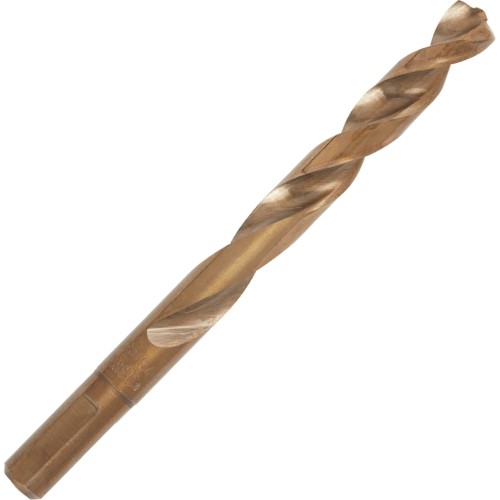 Свердла по металу з міцної та стійкої до нагрівання швидкорізальної сталі з 5% додаванням кобальту. Виготовляється відповідно до DIN 338. Поліровані. Для свердління високолегованих сталей та металів з межею міцності на розрив понад 1000 Н/мм², наприклад, нержавіюча сталь. Нова конструкція ріжучої частини QUAD EDGE з кутом заточування 135° із самоцентруванням та 4 ріжучими кромками: заточування 135° із самоцентруванням для точного та швидкого свердління без "гуляння" при засвердлюванні. Чотири ріжучі кромки для поділу стружки на дрібніші для зниження тепловиділення та більшого терміну служби свердлу. Змінний крок спіралі: для швидшого вилучення стружки. Допомагає знизити теплове навантаження та запобігти перегріву свердла. Посилення серцевини свердла: серцевина свердла товщі у хвостовика. Посилена серцевина збільшує надійність шнека. 3 плоскі грані на хвостовику починаючи з ⌀5 мм для кращого закріплення в патроні та запобігання провертанню. Колір: бронза.