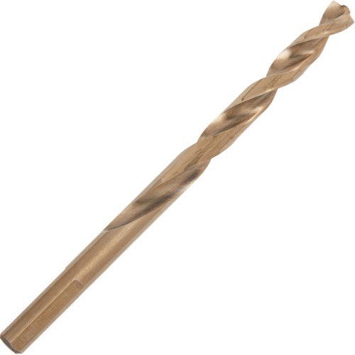 Свердла по металу з міцної та стійкої до нагрівання швидкорізальної сталі з 5% додаванням кобальту. Виготовляється відповідно до DIN 338. Поліровані. Для свердління високолегованих сталей та металів з межею міцності на розрив понад 1000 Н/мм², наприклад, нержавіюча сталь. Нова конструкція ріжучої частини QUAD EDGE з кутом заточування 135° із самоцентруванням та 4 ріжучими кромками: заточування 135° із самоцентруванням для точного та швидкого свердління без "гуляння" при засвердлюванні. Чотири ріжучі кромки для поділу стружки на дрібніші для зниження тепловиділення та більшого терміну служби свердлу. Змінний крок спіралі: для швидшого вилучення стружки. Допомагає знизити теплове навантаження та запобігти перегріву свердла. Посилення серцевини свердла: серцевина свердла товщі у хвостовика. Посилена серцевина збільшує надійність шнека. 3 плоскі грані на хвостовику починаючи з ⌀5 мм для кращого закріплення в патроні та запобігання провертанню. Колір: бронза.