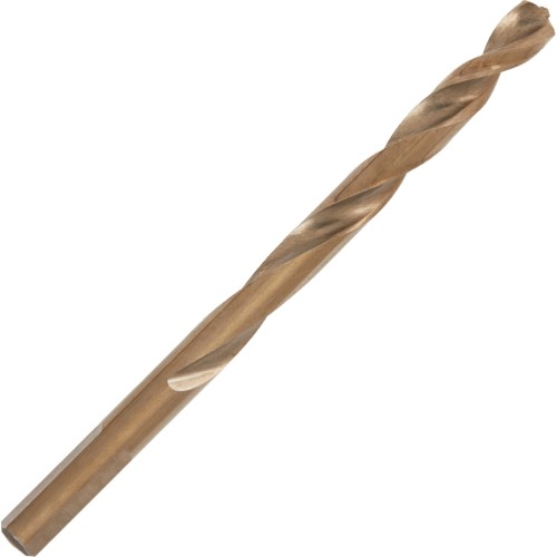 Свердла по металу з міцної та стійкої до нагрівання швидкорізальної сталі з 5% додаванням кобальту. Виготовляється відповідно до DIN 338. Поліровані. Для свердління високолегованих сталей та металів з межею міцності на розрив понад 1000 Н/мм², наприклад, нержавіюча сталь. Нова конструкція ріжучої частини QUAD EDGE з кутом заточування 135° із самоцентруванням та 4 ріжучими кромками: заточування 135° із самоцентруванням для точного та швидкого свердління без "гуляння" при засвердлюванні. Чотири ріжучі кромки для поділу стружки на дрібніші для зниження тепловиділення та більшого терміну служби свердлу. Змінний крок спіралі: для швидшого вилучення стружки. Допомагає знизити теплове навантаження та запобігти перегріву свердла. Посилення серцевини свердла: серцевина свердла товщі у хвостовика. Посилена серцевина збільшує надійність шнека. 3 плоскі грані на хвостовику починаючи з ⌀5 мм для кращого закріплення в патроні та запобігання провертанню. Колір: бронза.