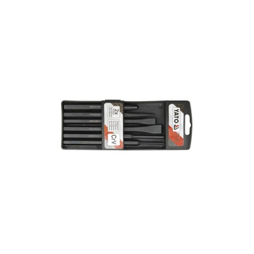 Набір зубил, кернів і перебійників YATO YT-4712 складається з 6 інструментів з якісної хром-ванадієвої сталі CrV60. Зубила, перебойнікі і керни стійкі до утворення іржі і корозії, а також показують прекрасні експлуатаційні якості. Технологія виробництва була вдосконалена, за рахунок цього набір здатний витримувати високі навантаження по час роботи.