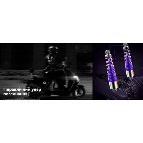 • Високе максимальне навантаження до 258 кг робить скутер універсальним рішенням як для поїздок із багажем, так і для пасажирських перевезень