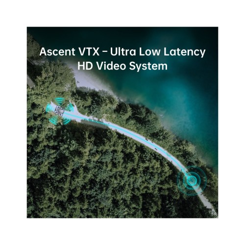 Відеосистема дрона побудована на 1/2,8-дюймовому сенсорі з широким кутом огляду 147°, що дозволяє охопити максимальний простір у кадрі. Передача здійснюється у форматах 1080P 60FPS або 720P 60FPS, забезпечуючи чіткість і плавність зображення. Відеопередавач Ascent Lite працює з потужністю від 25 до 100 мВт, що дозволяє адаптуватися до різних умов та вимог майданчика. У комплектних FPV-окулярах підтримуються частоти 5,725–5,850 ГГц, а максимальна кодова швидкість становить 50 Мбіт/с, що гарантує високу якість передачі без артефактів. Середня мінімальна затримка — лише 32 мс, а антена забезпечує середнє підсилення сигналу 4,9 дБі.