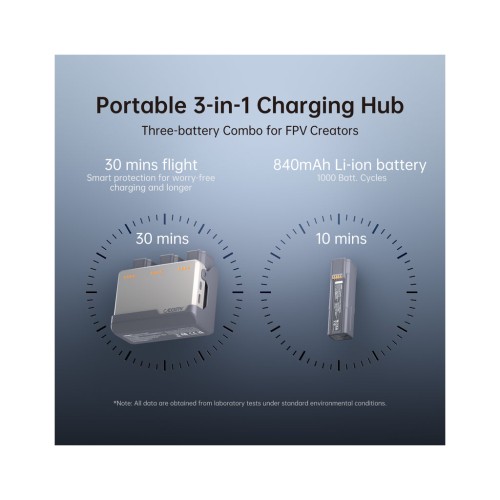Компактна конструкція із діагоналлю між моторами 78 мм у поєднанні з потужними двигунами 1102 14000KV забезпечує швидку реакцію, чудову тягу й високу маневровість. Пропелери HQProp U40×3GR-PC створені для ефективного повітряного потоку та стабільності навіть на високих обертах. Завдяки оптимізованій конструкції польотний час досягає вражаючих 8,5 хв, що є дуже високим показником для FPV-дрона такого класу.