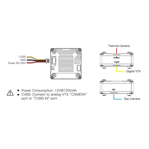 Камера має роздільну здатність 384×288 px та працює в інфрачервоному діапазоні 8–12 μm, що дозволяє точно визначати об'єкти за їхнім тепловим випромінюванням. Висока чутливість забезпечує чітке відображення найдрібніших температурних змін. Частота кадрів до 50 Гц гарантує плавну картинку без розривів, а аналоговий вихід PAL дозволяє легко інтегрувати модуль у більшість FPV- і відеосистем.