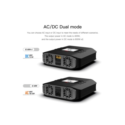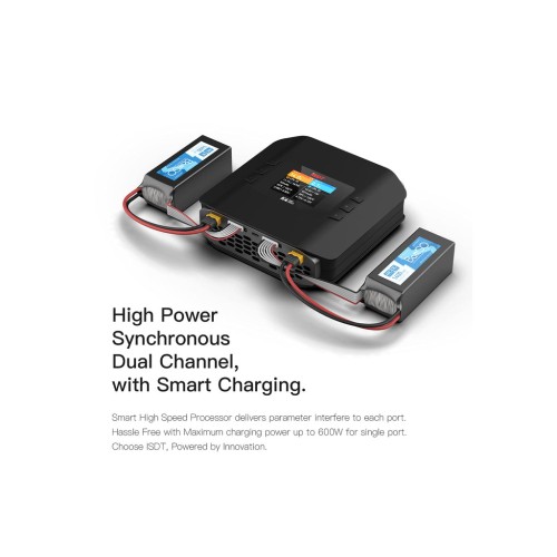 Зарядний пристрій iSDT з подвійним режимом змінного/постійного струму: наш зарядний пристрій Lipo має модель подвійного входу змінного струму 400 Вт/постійного струму DC600Wx2 з незалежним подвійним каналом, зарядний струм: 30AX2, макс. .K4 може отримати найновішу версію мікропрограми, гарантувати, що зарядний пристрій має оптимізовану продуктивність і постійну останню версію мікропрограми.