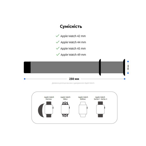 • Ремінець можна комбінувати з будь-яким корпусом Apple Watch відповідного розміру.