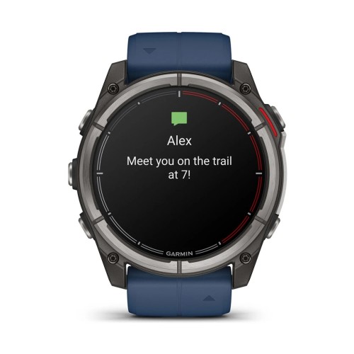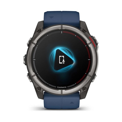 Смартгодинник Quatix 8 має водонепроникні кнопки, металевий кожух для додаткового захисту датчиків і яскравий 1,4-дюймовий AMOLED-дисплей із сапфіровим склом, стійким до подряпин, і міцним титановим обідком. Дизайн виконаний у характерній для серії Quatix кольоровій схемі з червоним таймером регати на циферблаті та фірмовим темно-синім силіконовим ремінцем.