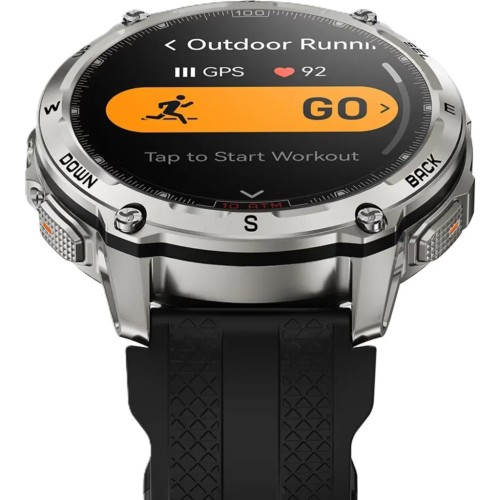 Елегантний дизайн годинника у поєднанні з корпусом сріблястого кольору, виконаним з високоякісних матеріалів, чудово підкреслює вашу індивідуальність. Кругла форма корпусу забезпечує класичний вигляд, який ніколи не виходить з моди, а кольоровий AMOLED-дисплей діагоналлю 1.43" вражає своєю яскравістю та чіткістю зображення.