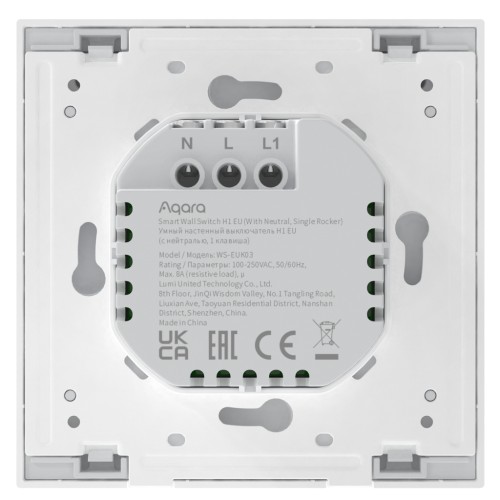 Настінний вимикач Aqara H1 (З нейтраллю, одна клавіша) — це розумний перемикач, який працює за допомогою протоколу бездротового зв’язку Zigbee 3.0. Після зв’язування з Aqara HUB він може дистанційно керуватись через додаток Aqara Home, має контроль за часом, показує статистику живлення та інші функції, а також може працювати з іншими розумними пристроями розумного будинку Aqara.