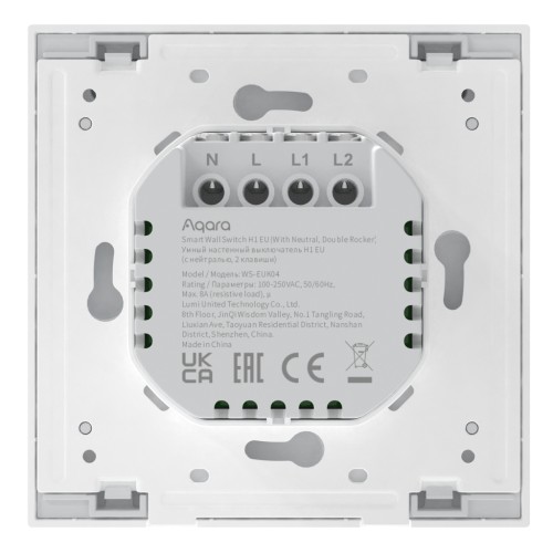 Настінний вимикач Aqara H1 (З нейтраллю, дві клавіші) — це розумний перемикач, який працює за допомогою протоколу бездротового зв’язку Zigbee 3.0. Після зв’язування з Aqara HUB він може дистанційно керуватись через додаток Aqara Home, має контроль за часом, показує статистику живлення та інші функції, а також може працювати з іншими розумними пристроями розумного будинку Aqara.