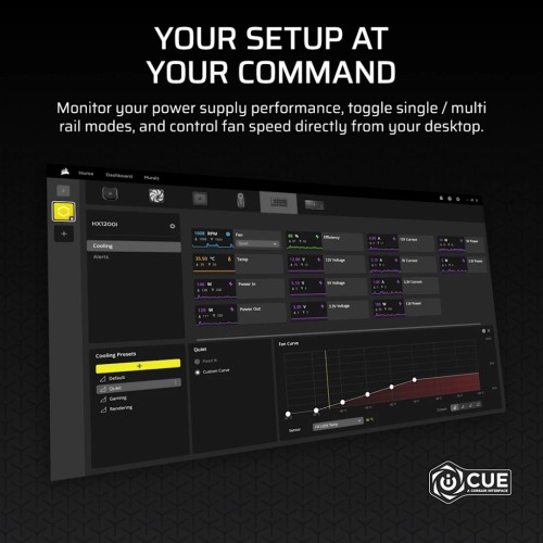 Нарешті, інтеграція з програмним забезпеченням CORSAIR iCUE дозволяє вам відстежувати продуктивність, регулювати швидкість вентилятора та налаштовувати режим роботи з однією або кількома лініями прямо з робочого столу, забезпечуючи максимальний контроль над вашою системою.