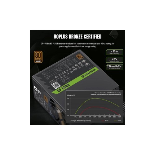Ультрастабільний блок живлення GAMEMAX GP 650B 80+ Bronze з подвійним керуванням постійного струму, інтелектуальним вентилятором та преміальним теплорозсіюванням.