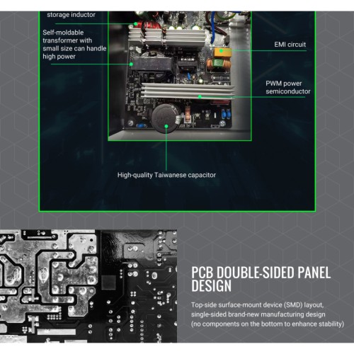 Блок живлення забезпечує до 85% ККД (рівень 80 PLUS Bronze) та оснащений технологією APFC, що оптимізує споживання електроенергії. Це дозволяє зменшити тепловиділення, підвищити стабільність роботи та скоротити витрати на електроенергію.