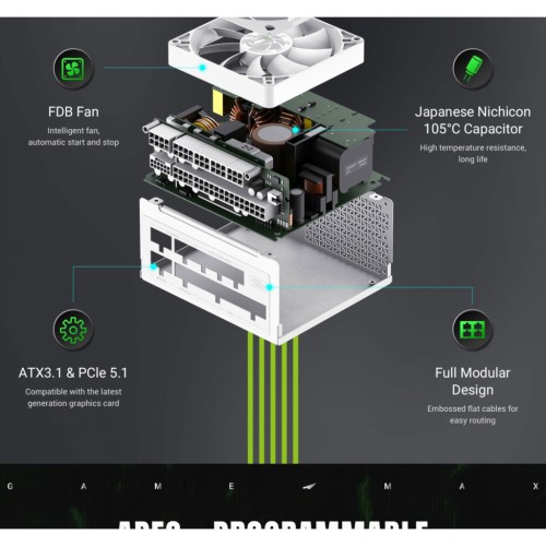 GS 750G WH V25 — це компактний та потужний SFX-блок живлення з сертифікацією 80 Plus Gold, створений для стабільної та ефективної роботи сучасних ПК, у тому числі продуктивних ігрових та компактних збірок.